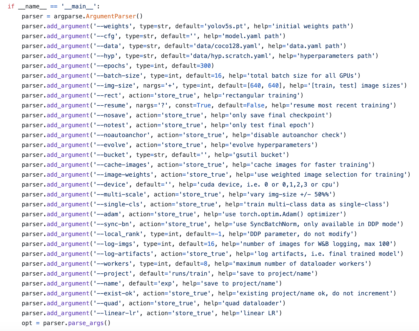 argument에 대한 설명은 github.com/ultralytics/yolov5에서 볼 수 있다.