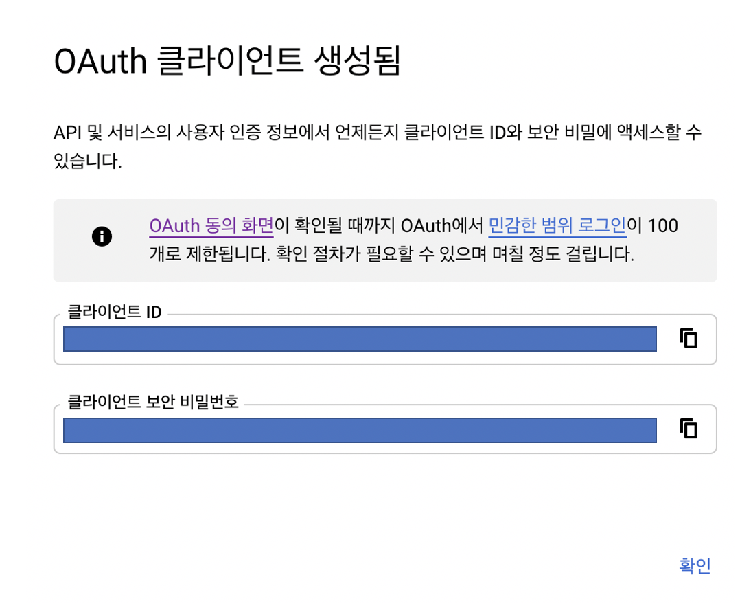 클라이언트 ID 가 생성됐음 (이걸 복사 해서 clientId에 붙여넣자)