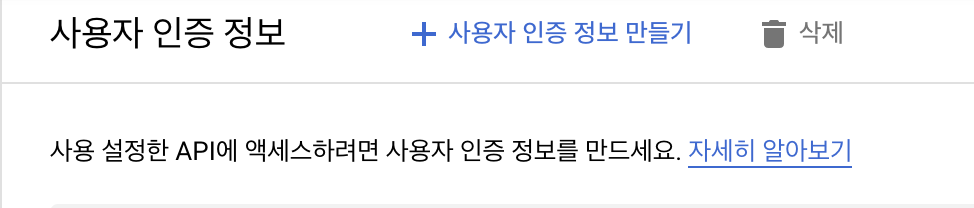+ 사용자 인증 정보 만들기 -> OAuth 클라이언트 ID