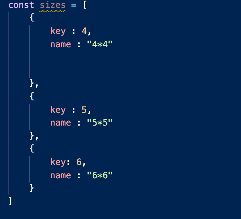 sizes라는 배열안에 위와 같이 값을 넣고