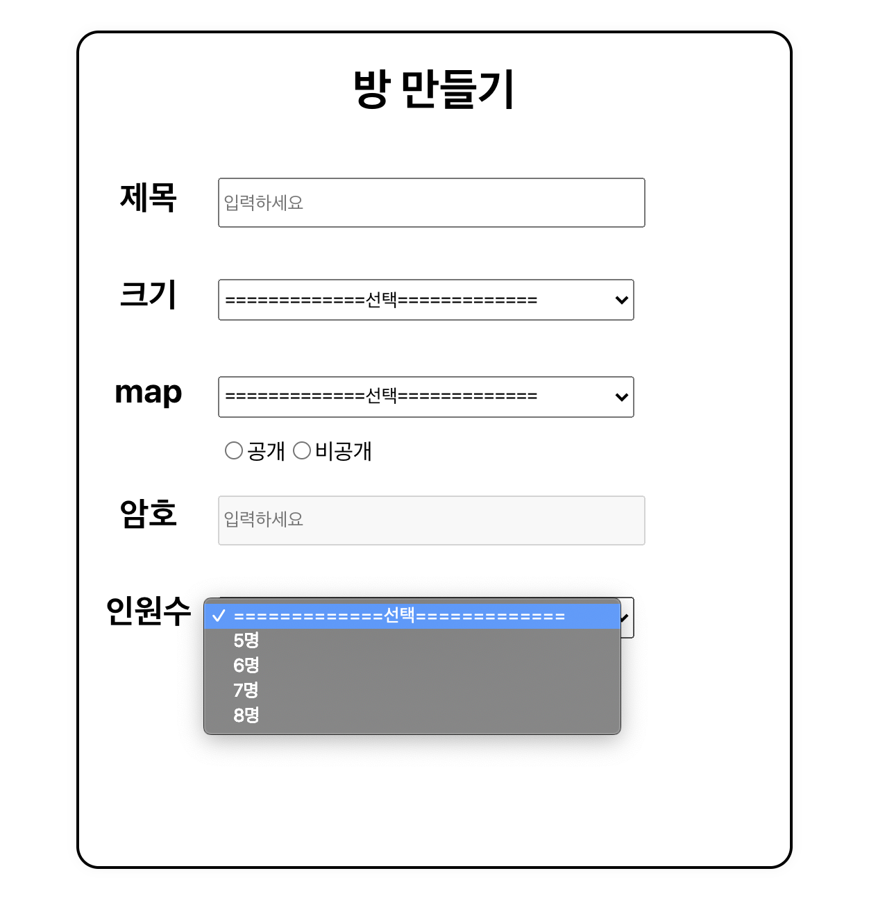 최대 인원을 5명~8명으로 선택할 수 있도록 배열을 만든다.