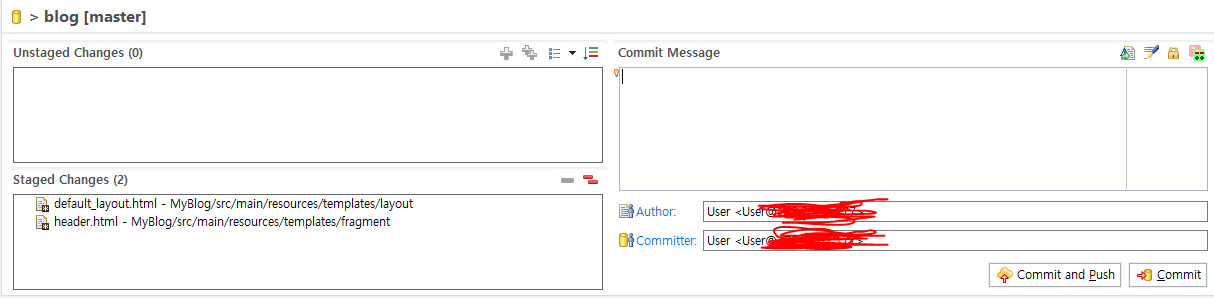 commit message에 글을 작성하고 commit and push를 누르면 이제 commit이 된 것이다