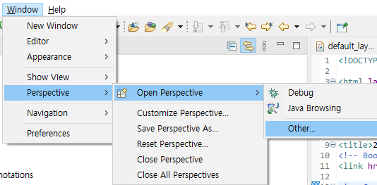 sts 에서 [window] -> [perspective] -> [open perspective] -> [other] 에 들어가서