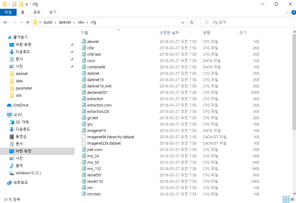 자신이 다운받은 weights에 맞는 conv를 얻는다. (cmd창에서 command를 입력하여 얻을 수 있다)