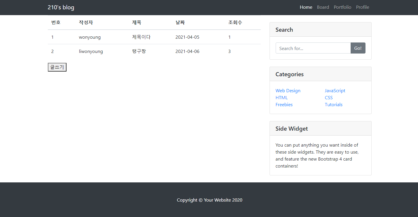 | 스프링부트 게시판 만들기 (7) - 글 작성 로직 생성 (0) | 2021.04.27 |