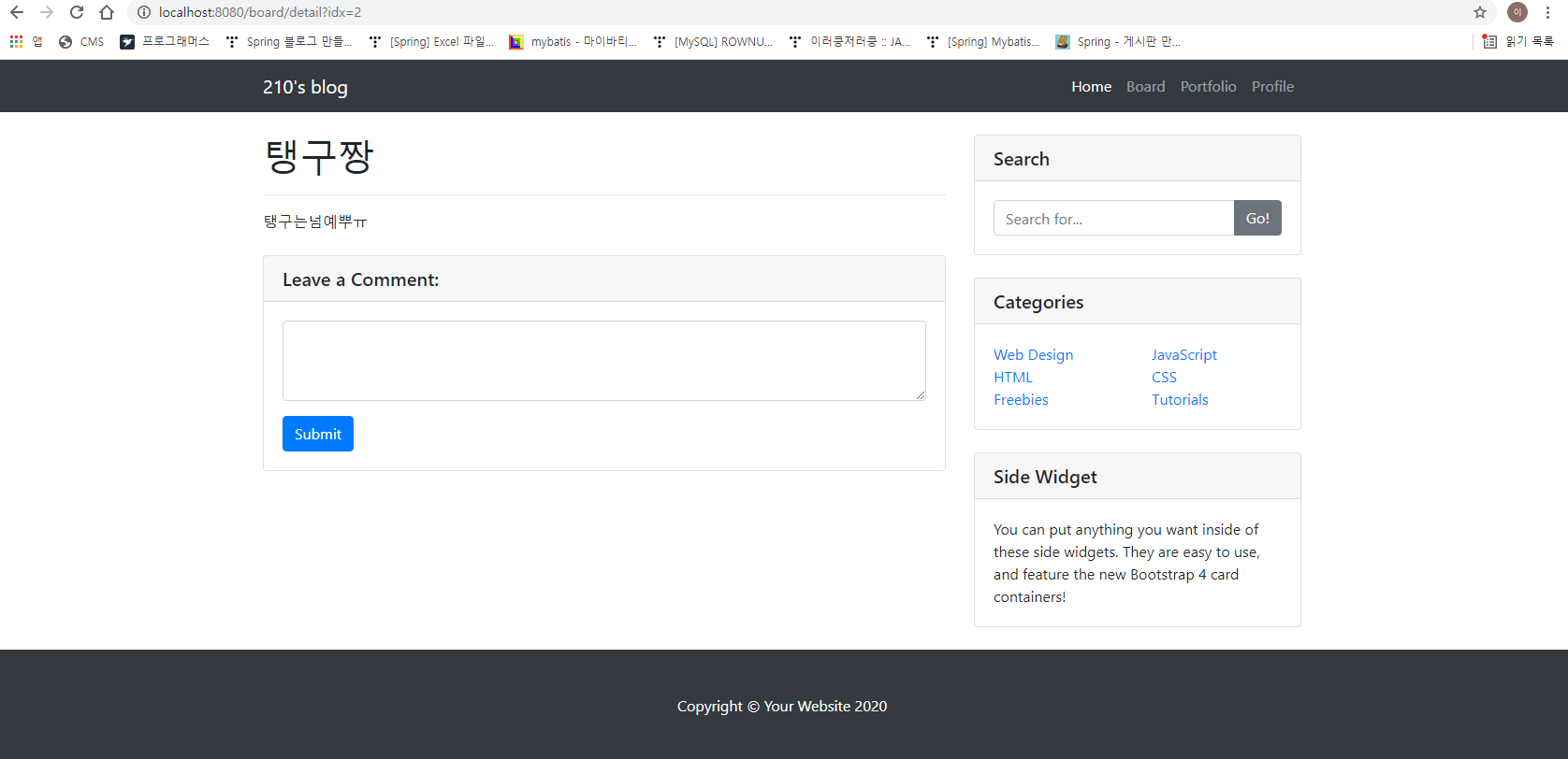 글의 제목을 클릭하면 해당 idx를 parameter로 보내고 그에 맞는 내용을 가져와서 알맞게 출력되는 걸 확인할 수 있다.