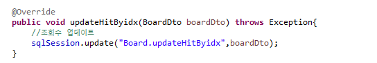 -> 1. 해당 idx의 hit 를 1 증가 시키고 2. 해당 idx 글을 select하기 의 순서로 진행할 것임