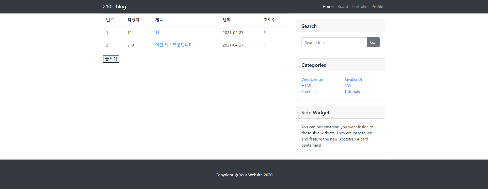 | 스프링부트 게시판 만들기 (7) - 글 작성 로직 생성 (0) | 2021.04.27 |
