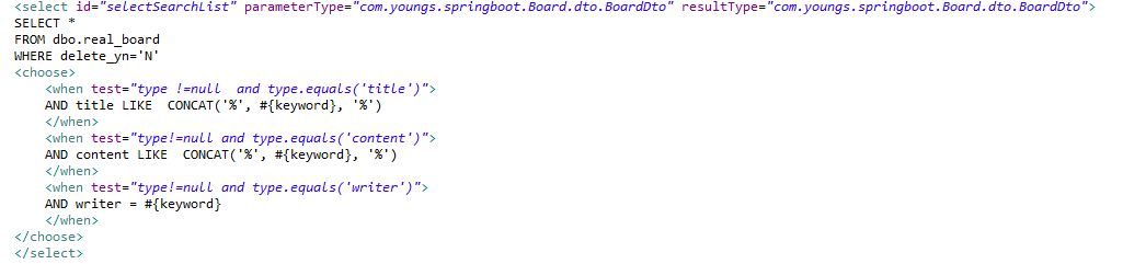 type을 선택하지 않고 검색 버튼을 눌렀을 땐 delete_yn='N'인 글들을 출력한다(원래 글 목록 페이지 기능과 동일)