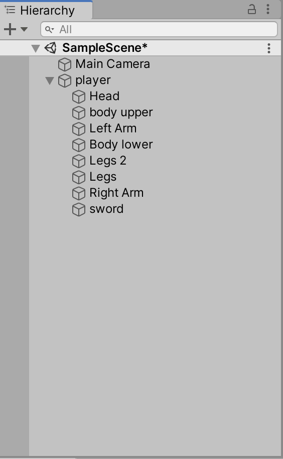 이 캐릭터의 구성요소들을 부모 오브젝트를 만들어서 하나로 묶어준다
