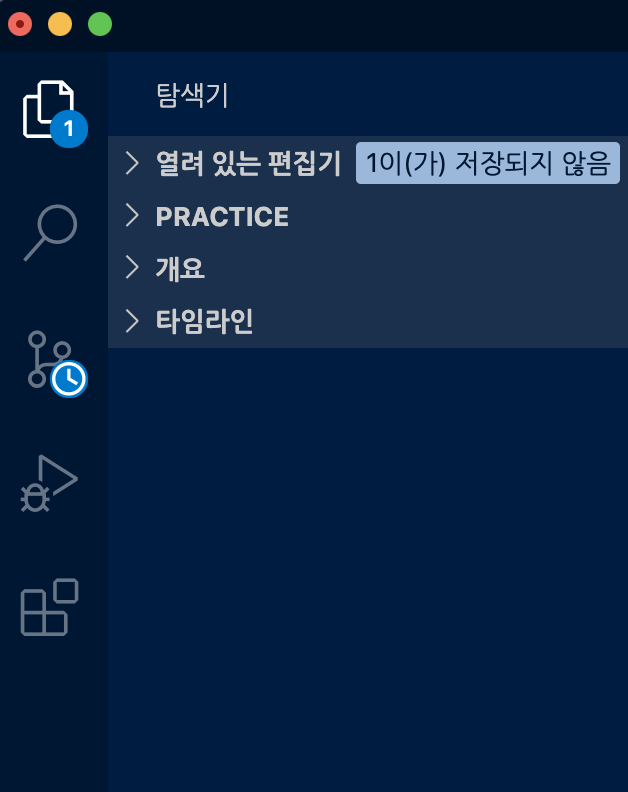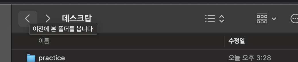 나는 Desktop아래에 "practice"라는 폴더를 만들었다.
