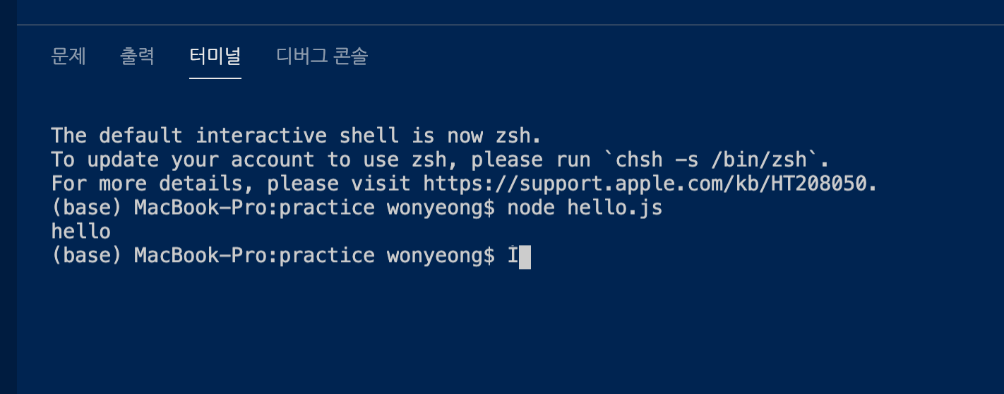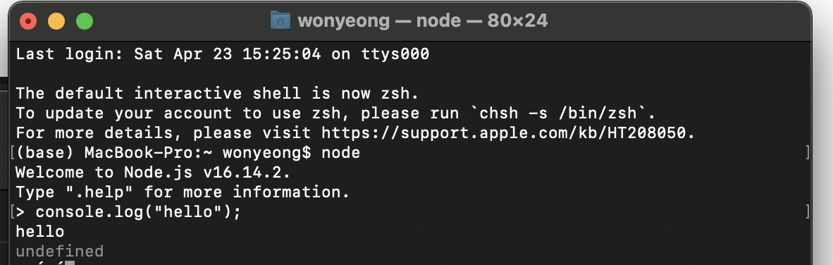 terminal에서 "node"입력 후 아무거나 출력해보기.